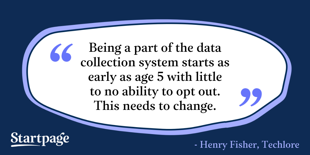 “We live in a time where you are unable to get an education from most schools around the United States, from elementary school, through college —unless you commit to using Google or another technology supplied by an invasive company. Being a part of the data collection system starts as early as age 5 with little to no ability to opt-out. This needs to change.”