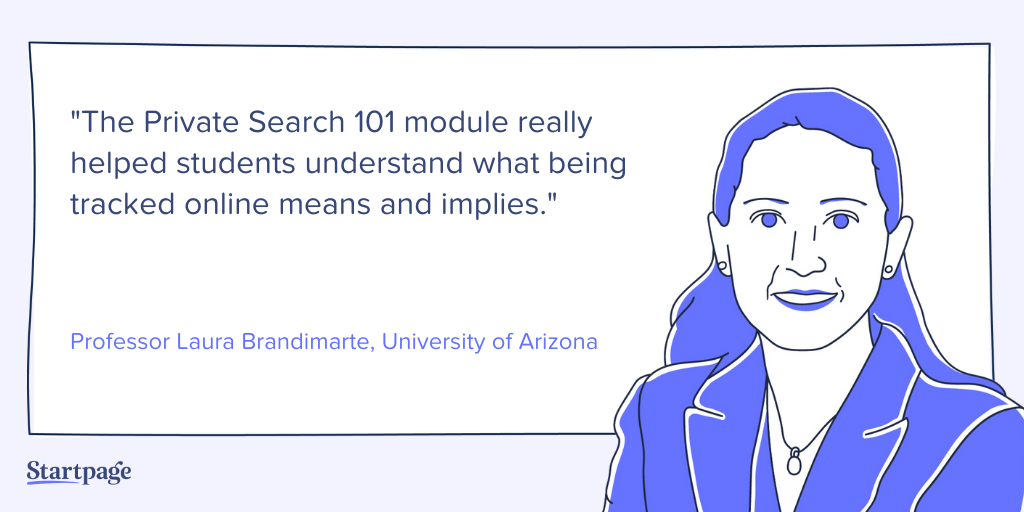 With Startpage’s Private Search Engine 101 lesson plan, we hope to educate university students about how their personal search data is collected, used, why they should care, and what they can do to take control. With this course, we underscore the importance of data privacy, teaching students that utilizing a private search engine can be an easy and implementable adjustment to their everyday lives.