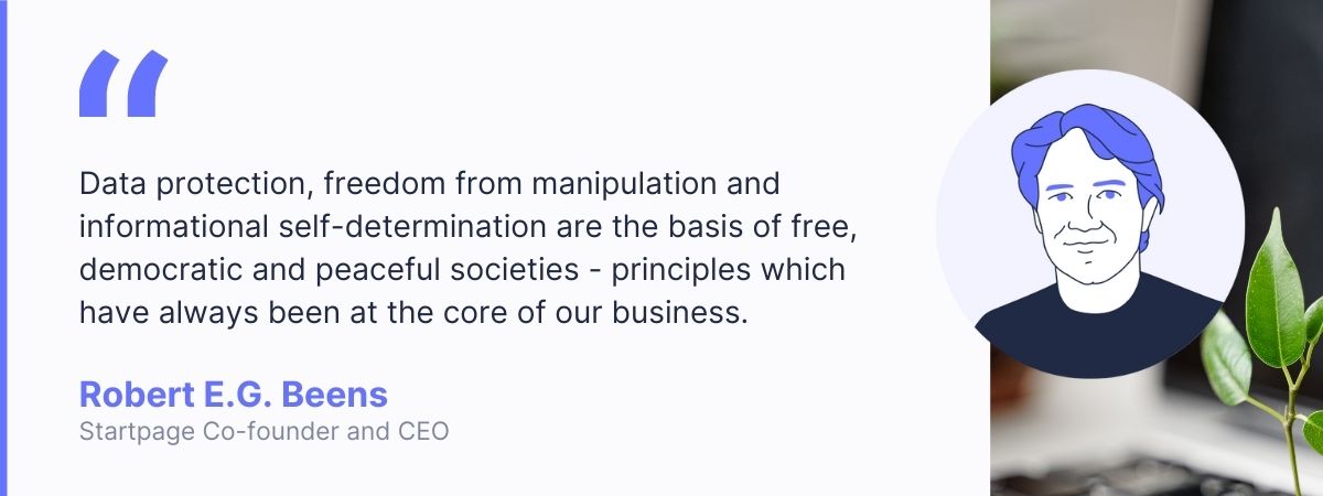 At Startpage, we want to help create a sustainable society that is worth living in. We do this by protecting the right to privacy and thus practicing effective and resource-saving data management.