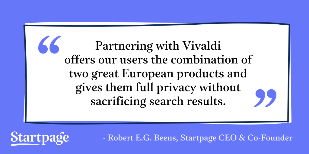 “Search is at the core of the online experience for our users,” said Jon von Tetzchner, CEO and co-founder, Vivaldi. “We’re partnering with Startpage to make it easy for users to protect their privacy. They can search the Web freely and without any intrusions to their privacy.”